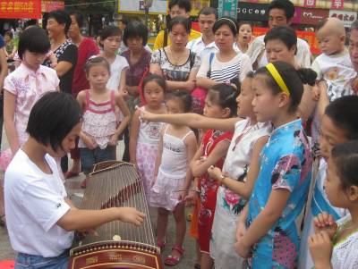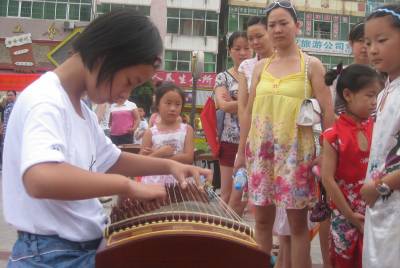 学习古筝,感受古典7月5日,35名少儿在安陆市太白广场和老师一起进行古筝表演,一下子吸引了数百名过路观众的目光。古筝是一种古老的民族乐器,其形制为长方形木质音箱,弦架”筝柱”(即雁柱)可以自由移动,按五声音阶排列,最早以25弦筝为最多(分瑟为筝);唐宋时有弦十三根,后增至十六根、十八弦、二十一弦等,目前最常用的规格为二十一弦。为让学生感受古典音乐的古朴与典雅,使学生过一个快乐而有意义的暑假,该市实验小学肖玲老师特开办暑期特色乐器”筝乐坊”培训班,以弘扬传承优秀的中华文化。签约摄影师:王代金