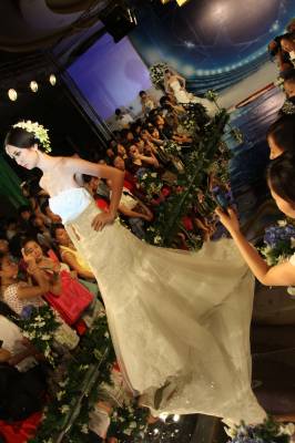 2010年7月4日,武汉,”我们结婚吧”2010婚庆展揭开面纱。最有特色的现场婚礼主题秀和婚纱T台秀模特全部由得意生活网网友报名、甄选而出。幸运入选的草根美女们表示,穿上婚纱是女人一辈子的梦想,她们很想用这个难得的机会过一把”婚纱瘾”。