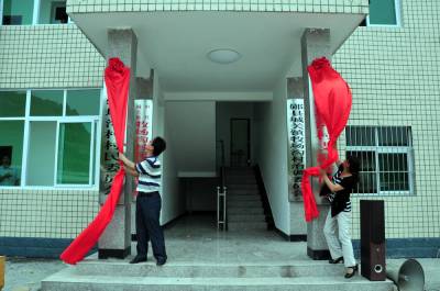 7月5日上午,湖北省郧县城关镇外迁村牧场沟村新办公楼门前鞭炮齐鸣,这是该村正在举行新办公楼挂牌仪式,新办公楼于2009年9月8日动工兴建,占地1.6亩,高3层有18间办公室和电教室,建筑面积650平方米,总投资80万元.牧场沟村是1968年因国家兴建丹江口水电大坝而从汉江北岸后靠上山的,平房办公室经过42年来的风雨己成危房.国家实施南水北调中线工程后该村党支部书记龚万梅及全村共有60户248位村民将搬迁到武汉市蔡甸区,还有许多村民将后靠上山,党支部和村委会办公室也将在畜水后被水淹没,党支部书记龚万梅看在眼里急在心上,临走一定建起一幢新的办公楼让新的村党支部和村委会进住办公和村民活动室,经全村村民同意和多方努力,经过10个月努力终于建起一幢集办公,服务,娱乐,电教等为一体的新办公楼,了却了党支部书记龚万梅临走前的最后一桩心事.图1为牧场沟村60年代笫一次搬迁所建的旧平房办公室.图2为牧场沟村建起的新办公楼.图3为城关镇镇长徐洪波(右),牧场沟村党支部书记龚万梅(左)分别为村委会和党支部办公室揭牌时的情景.周家山杨文华摄湖北省郧县城建监察大队电话13872840078邮编442500