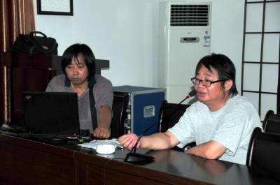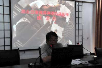 7月2日下午<<湖北日报>>签约摄影师座谈会在湖北省郧县郧阳革命烈士陵园影相室举行,来自郧县各系铳,单位40余人到会听取了<<湖北日报>>摄影部主任熊海泉的影相讲座和注册<<湖北日报>>签约摄影师现场演示,到会40余人全部签约,这些签约摄影师将通过照片向外宣传郧县改革开放发展经济的新形象和南水北调中线大移民的镜头.图为<<湖北日报>>摄影部主任熊海泉正在为学员们上课时的情景.周家山陈兆军摄湖北省郧县城建监察大队电话13872840078邮编442500