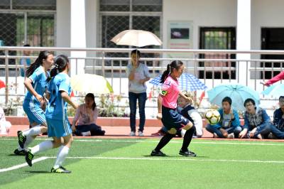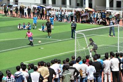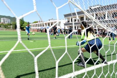 湖北荆门:青少年角逐“空中绿茵场”