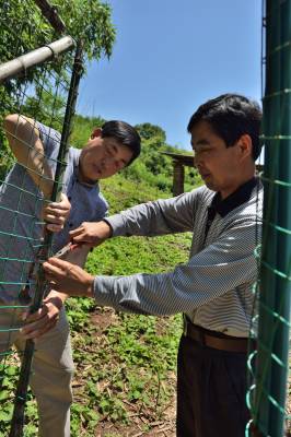 产业扶贫见成效 5月12日,宜都市枝城镇全心畈村五组,精准扶贫户周心福正与扶贫联系人尤太洲(图1左)加固鸡舍。尤太洲是宜都市公路局工会主席,是周心福的扶贫联系人。去年,尤主席帮周心福买来小猪及小鸡,帮助他发展养殖业并全部包销,当年,周心福出栏生猪12头、鸡230只,还销售了1000多元的蔬菜及鸡蛋1000多个,取得的收入令周心福非常满意。今年,尤主席又帮周心福买来50只鸡,还准备出栏生猪20头。周心福对未来的生活充满信心。