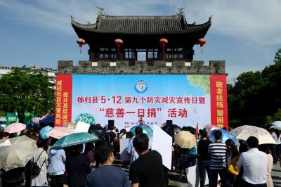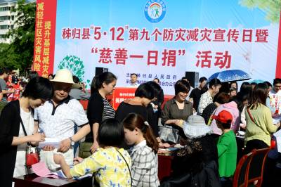 5月12日,三峡库区秭归县“慈善一日捐”活动在县城南门广场举行,企业、单位踊跃捐款,当天共募集善款31万元。 视界网 王爱平 摄 工作单位:秭归县委宣传部 联系地址:秭归县茅坪镇长宁大道18号县政府大楼701办 联系电话:13487250823 邮政编码:443600 QQ邮箱:248545598@qq.com
