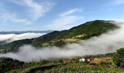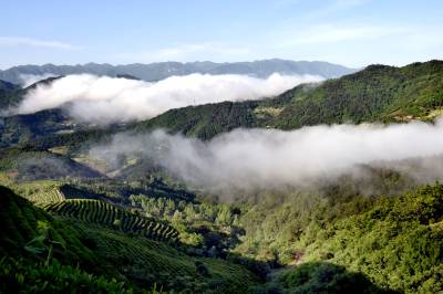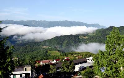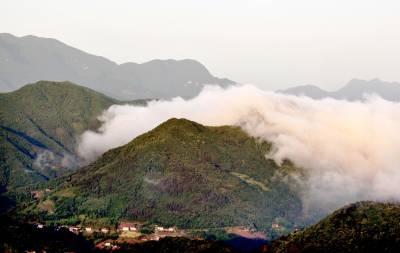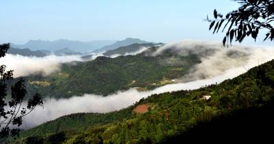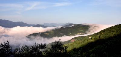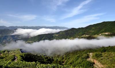 这是2017年5月12日拍摄的“水”漫荆山云海奇观。当日早晨,荆山山脉的湖北省襄阳市南漳和保康两县交界处出现奇特的云海奇观:一条雾带像水库开闸放水的情形由北向南奔腾飘逸,十分壮观。