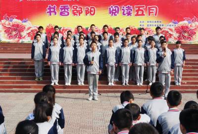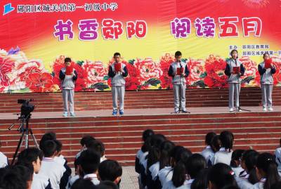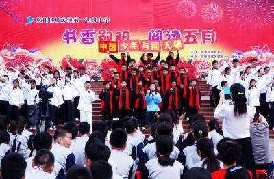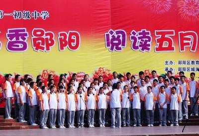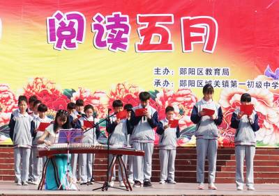 5月15日,十堰市郧阳区城关一中初一年级的学生们正在郧阳文化广场开展"书香郧阳 阅读五月"朗读比赛,在领读、合诵和音乐声中,各班代表队纷纷登场,朗诵了一篇篇散文和一首首诗歌,著名篇章引起学生们的阵阵掌声,读书活动将在十堰市深入持久的开展。 视界网周家山 摄