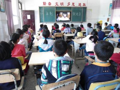 16日,十堰市郧阳区五峰乡界牌完全小学学生在观看法治微电影《留守儿童》。该区通过观看法治微电影、法律知识讲座、法官进校说法等形式,在中小学开展“法制教育进校园”活动,向学生普及法制知识,提高学法、用法、守法意识。 (十堰市郧阳区五峰乡界牌完全小学 周学山 442527 15997807753)