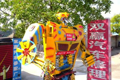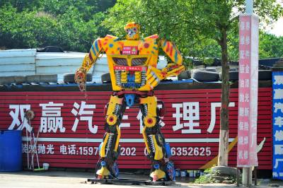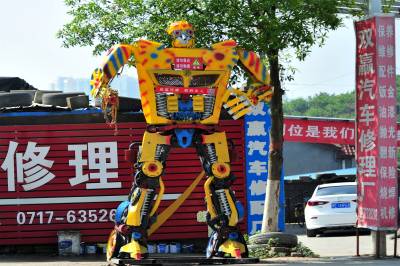 > 宜昌一汽修厂废旧件拼“变形金刚”做招牌(客户端采用)