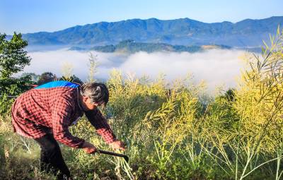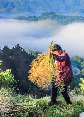 2017年05月17日,竹溪县县河镇马鹿山留守村民正在云海仙境美好自然环境中收割丰收的油菜籽。 时下正是收获油菜籽腾地夏播黄金时节,竹溪县各地呈现农民抢晴天、抓季节如火如荼忙收菜籽腾地夏播农作物,力争各项农业生产增产增收,为脱贫致富而努力奋斗。据农业部门评古统计数据显示:竹溪县今年的油菜收成同16年的油菜收成比增产8%左右(通讯员刘安西、视界网温大树)摄影报道。