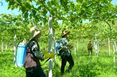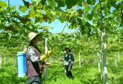贫困户家门口就业增收 5月17日,来凤县革勒车镇桐麻村的几位贫困妇女,在“森森果蔬家庭农场”为葡萄施叶面肥。该镇目前共有43个以种植、养殖、加工、餐饮为主的各类专业合作社,为200余户贫困家庭提供了家门口就业的机会,户平增加经济收入达4000余元。 本报视界网 姚丙然 来凤县革勒车镇文化服务中心 电话:13997799385