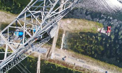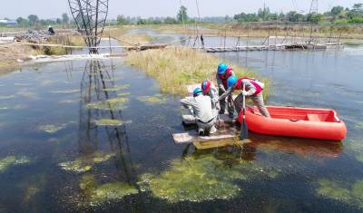 5月17日,国网湖北检修公司鄂西北分部员工乘舟搭建施工栈桥,为带电更换500千伏斗樊二回13号拉线塔拉线做准备工作。500千伏斗樊二回是连接荆门到襄阳的重要输电线路,对襄阳市电力供应起着重要作用。500千伏斗樊二回13号拉线塔位于一片大面积虾塘内,由于长时间浸泡在水中导致拉线拉棒锈蚀严重,如不及时更换,可能造成倒塔事故,此次更换的新拉线每根长达35米,浸水部位采用加长式防锈拉棒,有效的防止了拉线锈蚀问题。经过5个小时的紧张施工,完成了4组拉线的更换任务,保障了500千伏斗樊二回的安全运行。