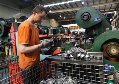 5月18日,在孝昌开发区的湖北惠洋电器制造有限公司生产冲压车间,工人正在自动化生产线检查刚刚生产的电机盖质量,该公司冲压自动化生产线每天每条可以生产8000到9000个电机盖,比原来人工生产线上一天增加4000个电机盖的产量。该公司充分实行技术创新,先后实施4条冲压生产线自动化改造,提高生产效率,以创新驱动企业发展。元至4月,公司实现产值4.71亿元,生产各类电机1122万台,与去年同期相比增长124%。(视界网黄一鸣 黄志娟 摄)