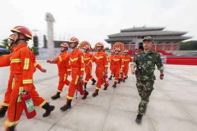 5月18日,随州消防官兵在炎帝广场大殿前巡逻,确保节会安全。据悉,丁酉年世界华人炎帝故里寻根节将5月21日在这里举行。今年寻根节由国务院台办、国家旅游局、中国文联、中国侨联、中华炎黄文化研究会和湖北省政府联合主办,继续沿用“四海一家亲,共圆中国梦”的主题,按照“高规格、小规模、大影响”的办节思路,安排了开幕式暨拜谒炎帝神农大典、炎帝故里国际经贸洽谈会、“亲情采风路•寻根随州行”暨湖北省中国旅游日活动3项主体活动,同时还设计了“拜炎帝、诵经典”吟诵比赛、炎帝神农文化庙会2个群众性文化活动。楚天快报记者杨闻名摄