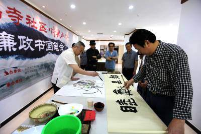 此次廉政书画笔会是湖北省枝江市纪委贯彻落实湖北省第十八个党风廉政宣传教育月活动内容之一,联合市委宣传部、市文联等部门组织开展开展廉政书画笔会,助推廉政文化进社区,进家庭,以“情”暖社区,以“廉”兴家庭,筑牢廉洁防线,为枝江践行“五大理念”,争当“五个示范”、夺取“三大目标”全面胜利提供纪律保障。