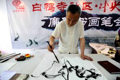 翰墨写正义,丹青抒廉洁。5月17日,湖北宜昌知名书画家周德聪、徐爱国、邹家喜、张克春等相聚在湖北省枝江市白鸭寺社区中央山水,泼墨挥毫。“勤政为民”“不忘初心”“风清气正民心顺,纪肃法严天下安”等一幅精美幅廉政书画作品在名家笔下一气呵成。