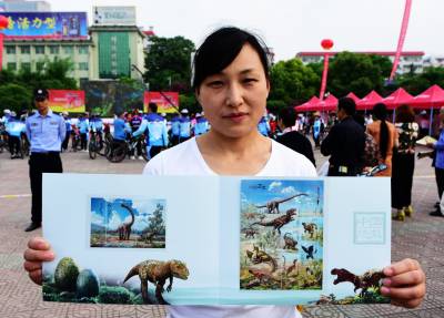 图为<<中国恐龙>>特种邮票首发仪式系列活动时的情景。