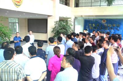 5月19日,巴东县官渡口镇镇村党员干部、镇直单位负责人正在县检察院听起副检察长讲解犯罪嫌疑人接收、审理、移交严格执法程序。