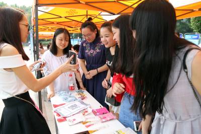 5月20日上午,武汉生物工程学院的大学生创业团队正在现场推介“互联网+”的创业项目。2017新洲区科技活动周在该院正式启动。新洲区在科技活动周期间,围绕着“科技强国、创新圆梦”这一主题,邀请大批科技企业进校园在现场与创业大学生签约。