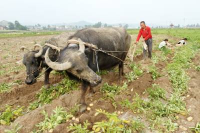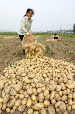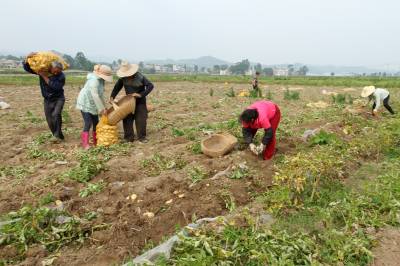 2017年5月20日,房县军店镇下茅坪村职业农民刘忠明种植的高产马铃薯喜获丰收,图为启挖马铃薯的场面。当地培养懂技术、具备市场营销、品牌包装、项目申报能力方面的新型职业农民,成为香菇、黑木耳、特色蔬菜、养殖等“八大”农业产业领域的领军人物。在新型职业农民的带动下,-批有文化的农民“借船出海”,组建专业合作社,组团做大做强地方特色产业。目前,优质耳菇创进欧洲和亚洲国家的市场,年出口创汇接近9000余万美元,“八大””特色地产品年均实现农业产值达65亿元,农民人平年均收入突破5000元以上。