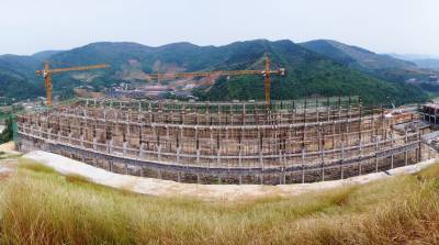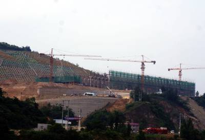 5日21日, 建筑工人正在南水北调中线工程水源区,十堰市郧阳区茶店镇茶店村加快建设城区垃圾焚烧发电厂,该项目占地面积约107亩,系丹江口库区及上游水污染防治和水土保持“十二五”规划的重点项目之一。总投资2.29亿元,建设日处理生活垃圾1000吨和污泥200吨,。目前该项目已完成护坡、道路、排水设施等工程建设,总建筑面积10900平方米的垃圾储存车间及综合楼主体正在加快施工。该项目建成后将使十堰市和武当山旅游特区生活垃圾得到100%无害化、减量化和资源化处理,同时对城区数千家餐馆日产生的150吨餐厨拉圾进行处理,技术工艺采用"预处理+厌氧发酵+沼气发电",年可发电160万度,年产粗油脂2600吨,生物柴油2500吨,营养土3500吨年可节约标准煤4500吨。对南水北调水源地保护和水质安全保障具有重要意义。