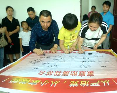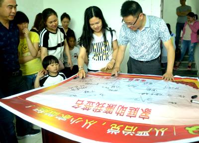 5月21日,来凤县革勒车镇党委、政府11名班子成员与家人、子女一道在“家庭助廉”签名栏上签名。