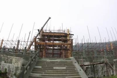 列为虎年10大工程的武当山玉虚宫、五龙宫、遇真宫修葺进程加快。时下,玉虚宫大殿正吊装大木构架(如图),五龙宫大殿构件正加紧制作,遇真宫就地抬高方案正在审批中,”三宫”修葺如期完成后,将为中外游客开辟更大空间的旅游场所。郭占柱摄
