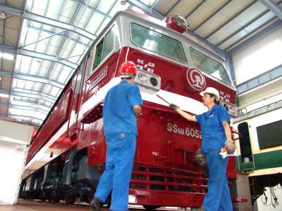 > 炎热高温下的机车检修