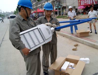 7日,孝感市路灯管理局在宝成路安装”LED”节能路灯。”这下好了,晚上回家再也不用‘摸黑’了。”看着路灯电杆一根根竖起,家住城区宝成路的周大爷高兴极了。据市路灯管理局相关负责人介绍,该局自筹60万元资金,对宝成路两侧安装80盏LED节能路灯,以方便市民夜间出行。李文勇摄孝感晚报新闻中心电话:13995858558