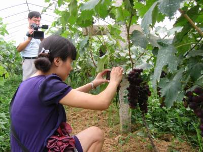 <云梦观光采摘葡萄园令人爱>7月7日,一群云梦城区市民到伍洛中丁村生态观光采摘葡萄园,亲手采摘自己喜爱的葡萄,拍摄葡萄美图。该园采取由顾客进园观赏,自由采摘方式经营,主打生态、旅游、观光、果实自采牌,吸引八方来客。目前,云梦、安陆、孝感、武汉等地客户纷纷进园观光购买可口的葡萄、提子。近年来,云梦县大力发展观光林业,发展葡萄、桃子、梨子等观光林业园,受到广大市民的欢迎。摄影:罗锋陈保忠