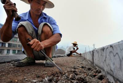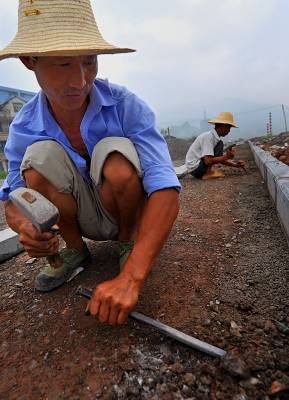 8日,宣恩县珠山镇兴隆大道道路施工的工人冒着小雨加紧施工。当天早上当地下起小雨,结束了连日来的高温天气。而据恩施州气象部门预报,未来4天当地将出现强降雨天气,平均雨量可能达到80毫米以上,部分乡镇可能出现更强降雨,局部还将伴随雷电、冰雹、大风等强对流天气。气象专家说,这是该州今年入汛以来最强的一次降水过程,降水范围广、持续时间长、局部降水强度大,并建议相关部门提前做好滑坡、泥石流等地质灾害监测预防工作。本报视界网宋文摄
