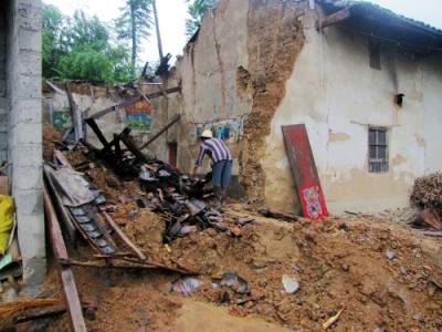 图文:两户民房”中暑”倒塌8日,郧西县夹河镇梅家河村村民廖道翠在倒塌的房屋废墟上清理杂物。7日上午,由于受持续高温影响,在热胀冷缩的物理因素作用下,该镇两户民房在半个月没有降雨的情况下相继突然”中暑”倒塌,有两人因躲避不及而受伤。房屋倒塌致9人无家可归,直接经济损失6万余元。灾情发生后,当地政府采取果断措施,对灾民进行妥善安置,对伤者给予及时治疗。(本报视界网徐雁初摄)