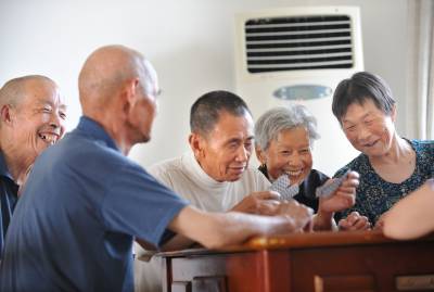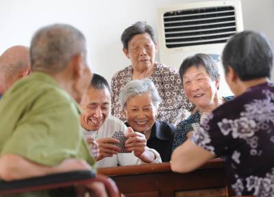 > 福利院老人空调房里过酷暑