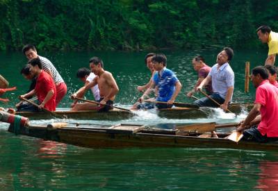 崇阳县青山镇老百姓有划龙船的传统习俗,他们并不固定在端午节期间划船,平常时每逢喜气事儿,乡亲们约会一声,就抬船下河去,大多数时间划船不排名次,胜负一笑了之。