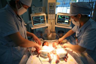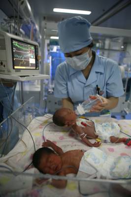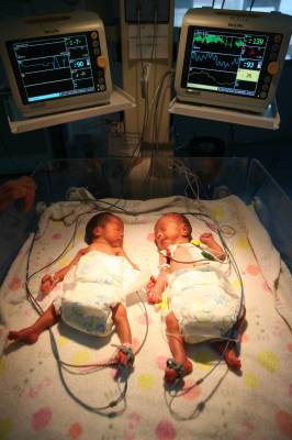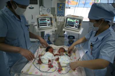 7月8日,经过湖北省襄樊市第一人民医院20多天的抢救,出生时体重仅有1.3千克、1.5千克的袖珍双胞小姐妹,体重在逐渐增加,各项生命体征已恢复正常。据了解,6月16日,襄樊市区产妇张某在怀孕31周时,分娩了这对体重分别为1.3千克、1.5千克的双胞胎女婴。刚一出生,医生诊断发现,她们不仅为早产儿、低出生体重儿,还患新生儿吸入综合征、新生儿高胆红素血症、新生儿缺血缺氧性脑病并颅内出血等多种病症,随时可能危及生命。在医护人员的全力救治和精心护理下,小姐妹奇迹般地幸运存活。据院方介绍,她们能够存活下来在临床上十分罕见。