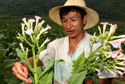 乡土人才 大有作为 7月9日,竹山县柳林乡三河村烤烟种植能手杨发明,在该县双台乡台子村承包的40亩烤烟地里打顶、摸叉。他说,按照目前他的烤烟长势,今年收入在10万元以上。类似杨发明这样的”土专家”,竹山县有肚倍种植能手、茶叶制作能手、养殖能手等3000余人,他们一部分被邻县、邻乡、邻村聘为技术员(仅该县柳林乡被外乡镇聘用的烤烟技术员就达60多人)。一部分在家乡带头致富、带动他人致富。这些乡土人才活跃在全县致富一线,成为该县实现科技兴农的先锋队、永不离开基层的技术兵。(邵义龙 摄)