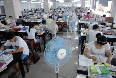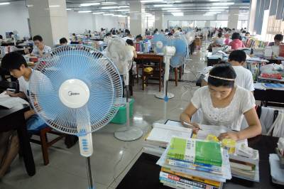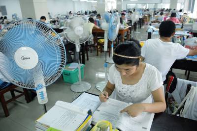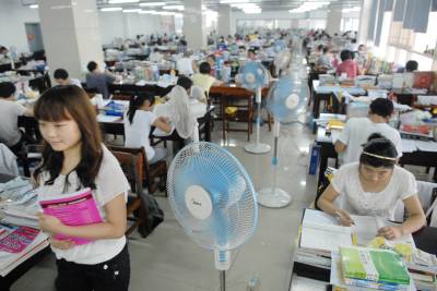 2010年7月9日,湖北经济学院图书馆自习室,300多名学生选择暑假留校考研复习。学校为备考同学集中安装了40台电扇,为学生及时送去了消暑清凉的贴心服务。
