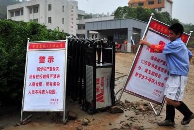 2010年7月8日18时许,地处三峡工程坝区的湖北省宜昌市夷陵区乐天溪镇遭强暴雨袭击,引发泥石流,约5万方山田塌方。该镇三峡小学受灾最严重,学校围墙及保坎垮塌40多米,电动门完全损毁,教学楼、教师宿舍一楼全部进水,泥沙最深处达3米,校内塑胶跑道几乎报废。因正值暑假,学校里只有老师,由于救援及时,未造成人员伤亡。 灾情发生后,当地干部群众奋力抢险,抗灾自救,驻三峡坝区武警部队紧急驰援,投入到抗洪抢险战斗中。目前,灾后恢复有序展开。本报视界网张国荣摄