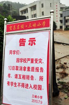 2010年7月8日下午至夜间,湖北省宜昌市9个县市区均不同程度遭受大到暴雨灾害,全市44.5万人受灾,紧急转移安置人员8025人,其中三峡坝区降雨量均超过100毫米,夷陵区乐天溪集镇降雨量达160毫米,房屋进水受损严重,局部崩坎滑坡较多。 灾情发生后,宜昌各受灾县市区党委政府高度重视,全市调用挖掘机等机械设备20台(套),组织人力1.5万人,全力疏通公路、沟渠,转移安置群众,把灾害损失降到最低限度。本报视界网张国荣摄