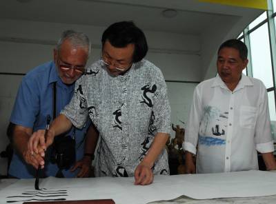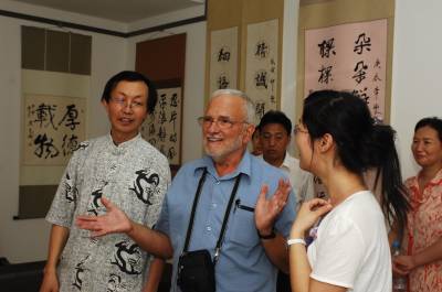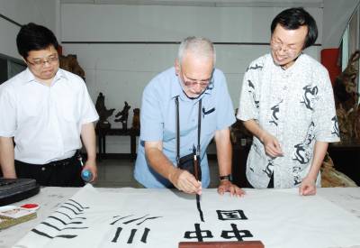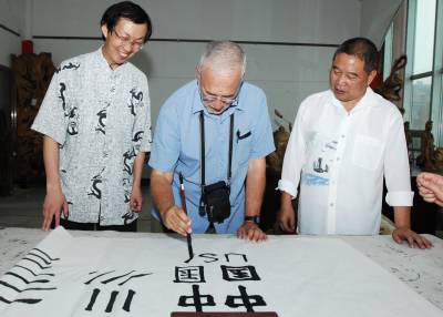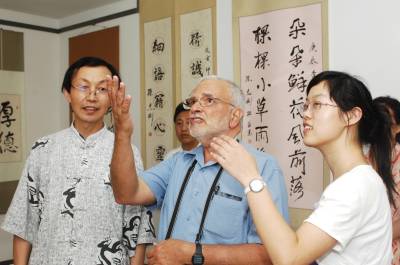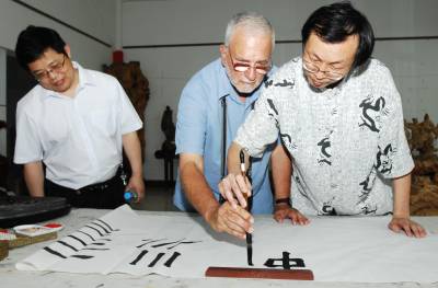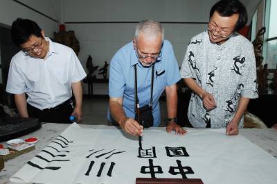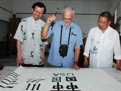 7月10日下午,美国弗吉尼亚大学教授琼·尼奇斯(JOECHINNICI),专程来到湖北襄樊,向该市著名书法家孙志刚学习中国书法。据介绍,琼·尼奇斯在国外的网站上看到孙志刚的书法作品后,被中国书法所吸引,今年暑假期间,他专程从美国来到中国,到襄樊向孙志刚学习中国书法。在学习了书法的基本要领后,琼·尼奇斯兴奋地用毛笔写下了中国、USA,他说,希望中美两国的文化交流更加繁荣,祝愿中美人民世代友好。