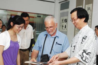 > 美国教授襄樊学习中国书法
