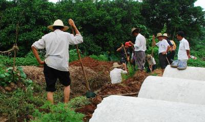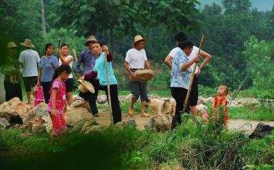 7月10日,武穴市大法寺镇丛山村涂大垸村民,利用农事清闲的时间,热火朝天地进行农田灌溉水利整修。这些水泥管、石块、水泥等水利物资都是村民自己购买,并且每家各户出劳力免费义务参加整修。本报视界网刘飞摄
