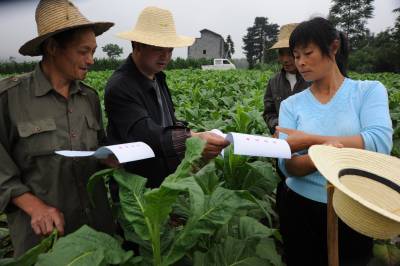 建始:烟叶”早花”急煞烟农干部指导烟农忙应对 7月9日,建始县龙坪乡龙潭坪片区总支书记刘杨德在姜家坪村给烟农发放烟叶”早花”资料和手把手指导管理技术。 今年因育苗环节遭受持续阴雨低温不利天气影响,部分烟区因少数烟农管理不断导致烟叶出现不同程度早花现象。该县龙坪乡姜家坪村村民李万倾说:”今年每株烟叶要比往年平均少4到5片。”早花及现象引起该县烟叶生产领导小组高度重视,及时编印《降低烟叶”早花”影响,牢记大田管理技术要领》,实行主要领导包片,组织驻村公务员、烟草技术员包村包组包田块,发放资料,田头”会诊”,及时组织农户进行扩膜培土、打顶摸杈、病虫害防治等系列,努力烟叶损失降到最低。本报视界网刘波建始县新闻中心刘波联系电话13032794298
