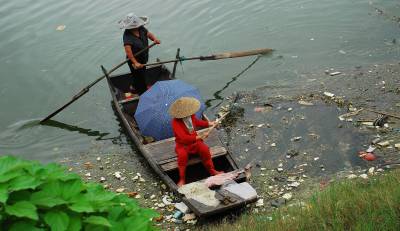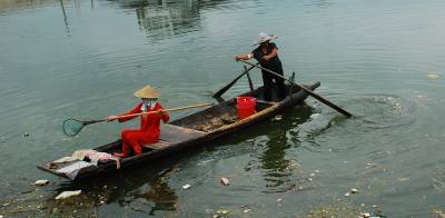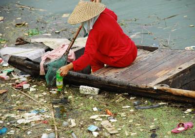 7月10日,黄石市阳新县富池镇临近长江边的一处河港,两名中年妇女一人划船,一人打捞水中的垃圾漂浮物。河港的两岸尽是居民点,长期以来,由于人们的环保意识不强,生活垃圾沿港而丢,原本清秀的河港成了天然垃圾场。当地的居民自发行动起来,争做河港”美容师”,还河港一片明净的天空。本报视界网刘飞摄