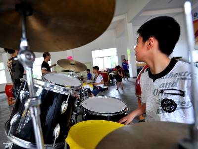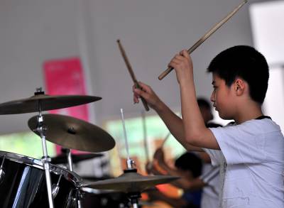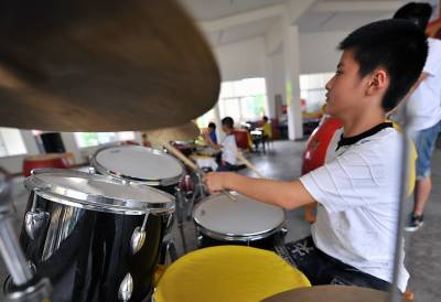 11日,宣恩县青少年课外活动中心,孩子们在练习打架子鼓。随着暑期开始,各种补习班的宣传也随之而来,然而据一位长期从事中小学语文、数学、黄语等假期补习的老师说:随着新”课改”实施的逐步深入,如今假期招收补习学生越来越难。取而代之的诸如绘画、舞蹈、音乐、乐器等短训班火爆异常。”平时孩子们学习非常紧张,让孩子在假期里选择自己的业余爱好,每天学习一两个小时,应该有利于孩子成长。”一位学生家长说。本报视界网宋文摄