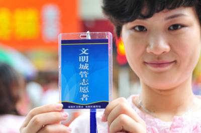 2010年7月11日,湖北省宜昌市夷陵区为期半年的文明创建志愿服务活动正式启动,该区机关干部将轮流走上街头,参与文明城管和文明交通志愿服务等活动,劝阻市民不乱吐乱扔、不乱踏乱摘、不乱贴乱画、不占道经营、不乱停乱放、不损坏公益设施,自觉遵守红绿灯信号、不横穿马路,共同营造党群共建、干群共建、全民参与创建的文明城市创建氛围。本报视界网张国荣摄