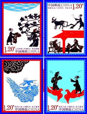 图文:郧西首发《牛郎织女》邮票8月16日,由中国邮政集团总公司发行的以中国四大爱情传说之一为题材的《牛郎织女》特种邮票,将在郧西县首发。据了解,此次发行的牛郎织女特种邮票一套共四枚,分别是盗衣结缘、男耕女织、担子追妻、鹊桥相会(如图),另外发行小本票。《牛郎织女》与《孟姜女》、《梁山伯与祝英台》、《白蛇传》为四大民间传说,《牛郎织女》邮票的发行,标志着四大民间传说全部发行了邮票。(本报视界网徐雁初蔡谟祥摄)