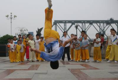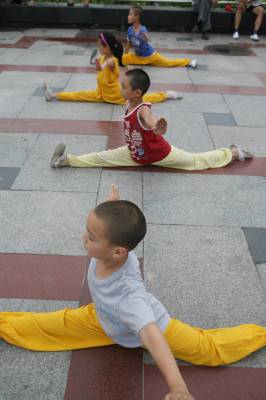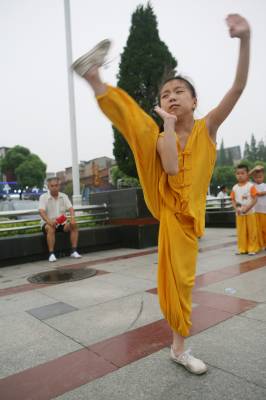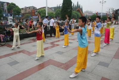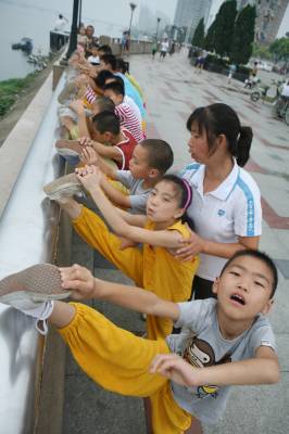 暑假期间,来自湖北省襄樊市区的30多名小学生,走进该市一家国术训练馆开展”‘吃苦’学国术”活动。39岁的女武师刘芬教练,每天为小孩们传授”武当字门拳”、少林拳、昆仑四门拳、咫尺拳等不同派别的国术,在磨练意志和增强体质中,让他们从小学习和了解中国传统武术,使国术更好地得以传承。