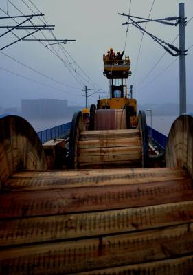 宜万铁路电气化工程由中铁电气化局二公司承建,包括接触线和承力索各953.87公里,13个牵引变电所、10个分区所和2个开闭所,电气化生产房屋1.7万余平方米,工程总投资10亿元。目前,宜万铁路开始大规模架线,接触网架设已进入恩施州境内,预计今年9月全线架通。宜万铁路东起湖北省宜昌市,西达重庆市万州区,全长377公里,是沿长江铁路大通道和沪汉蓉铁路快速通道的重要组成部分。预计2010年建成后,宜昌直达重庆开行动车组,最快只需3小时。视界网杨顺丕通讯员汪文富摄
