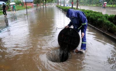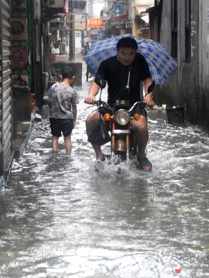 黄石市昨日普降暴雨城区部分路段渍水黄石市黄石日报摄影部邱孝威摄电话13807232603邮编43500211日上午,黄石市气象台发布暴雨橙色预警信号,该市普降降水量达50至70毫米的暴雨。当日,市区中心的大众乐园、磁湖路胡家湾路段、迎宾大道、黄石港区等部分地区道路出现渍水,给市民出行带来不便。该市排水管理处工作人员及时奔赴各渍水路段,打开下水道窨井加快排水,使渍水很快排除。图一:黄石迎宾大道上一辆小汽车在水中如同开”汽艇”。图二:一名青年从被淹的水中跨越。图三:一市民从水中起着摩托出行。图四:市排水管理处工作人员及时奔赴各渍水路段,打开下水道窨井加快排水。