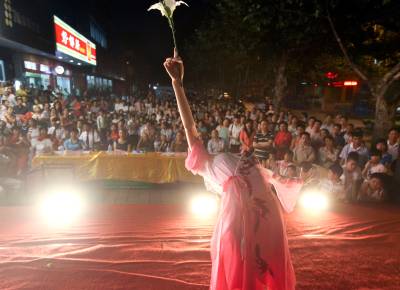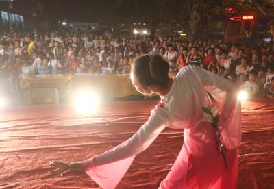 7月11日,连续2天的阴雨天气,使襄樊市区凉爽了许多。在该市樊城区,一家商场不失时机地推出促销演出,吸引了不少出户纳凉的市民前来观看。