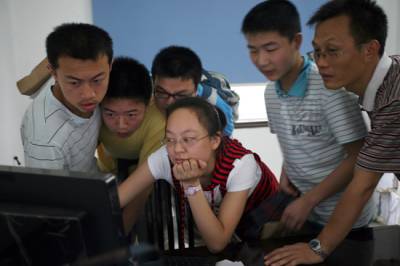 孝感首次实行网上填报中考志愿7月11日,孝感市文昌中学9年级8班的几位同学在学校通过计算机平台填报中考志愿,今年孝感市普通高中招生首次采取网上填报志愿录取的办法进行。各县市区分批网上填报志愿,考生可同时填报2个指令性计划志愿和2个择校生志愿,7月17日下午5时填报志愿结束。签约摄影师晏美华摄